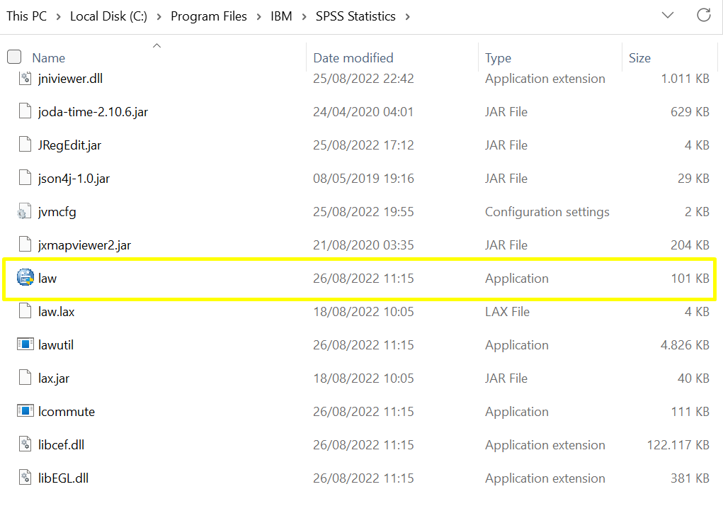 Ga naar Program Files\IBM\SPSS Statistics en zoek naar de applicatie "law". Dit is de License Authorization Wizard.